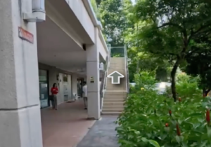 3.![]() Walk pass the guard/exit barrier, and walk up the stairs located on the right |
